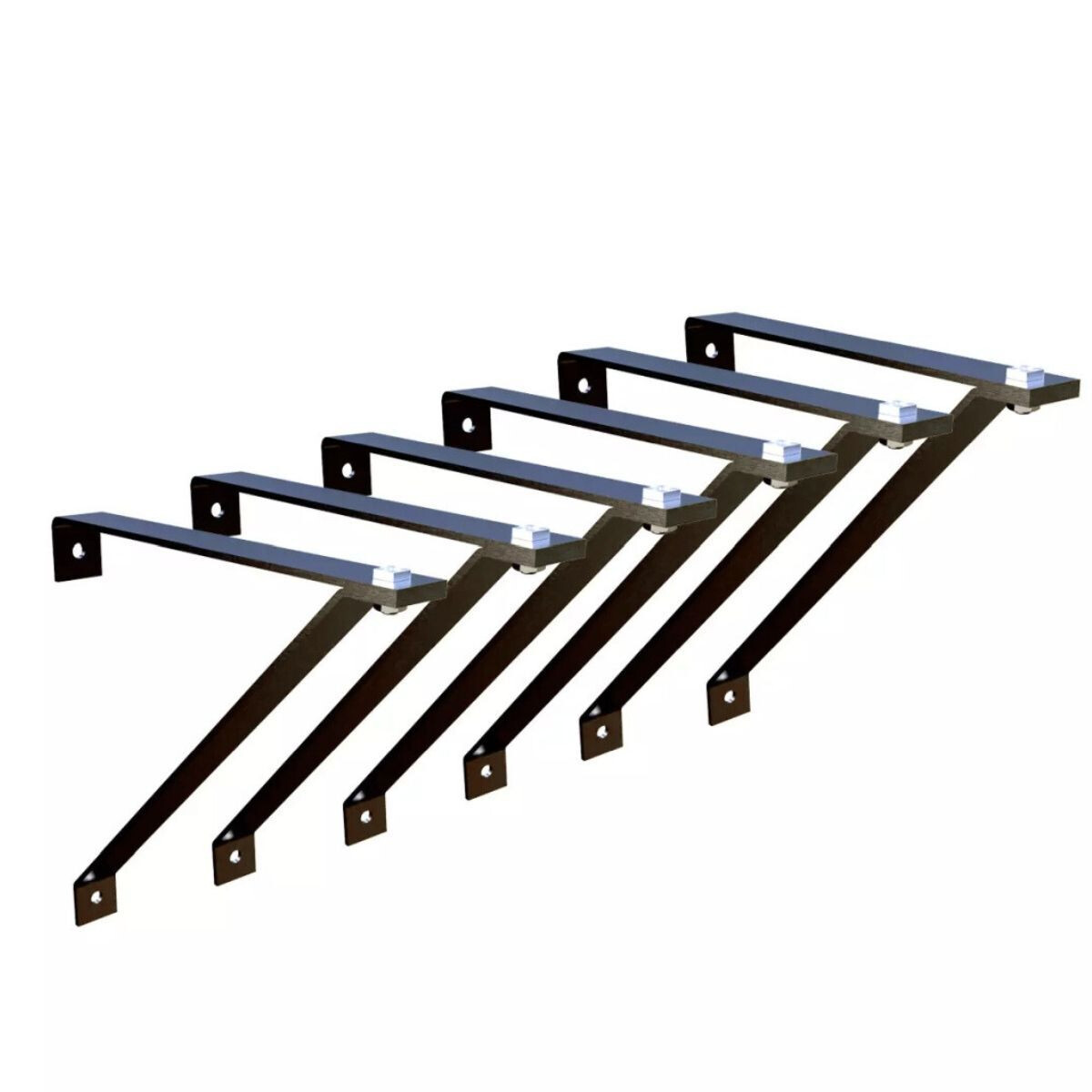 Mit einer Tiefe von 215 mm bieten die Regalträger ausreichend Platz für ein stabiles Regalbrett, z. B. eine Gerüstbohle. Sie können an jedem senkrechten Pfosten Ihres Gewächshauses ein oder mehrere Träger montieren. Bei einem Gewächshaus mit 4 Segmenten lassen sich beispielsweise drei Regalträger pro Seitenwand anbringen. Auch die Montage mehrerer Regalböden übereinander ist problemlos möglich.